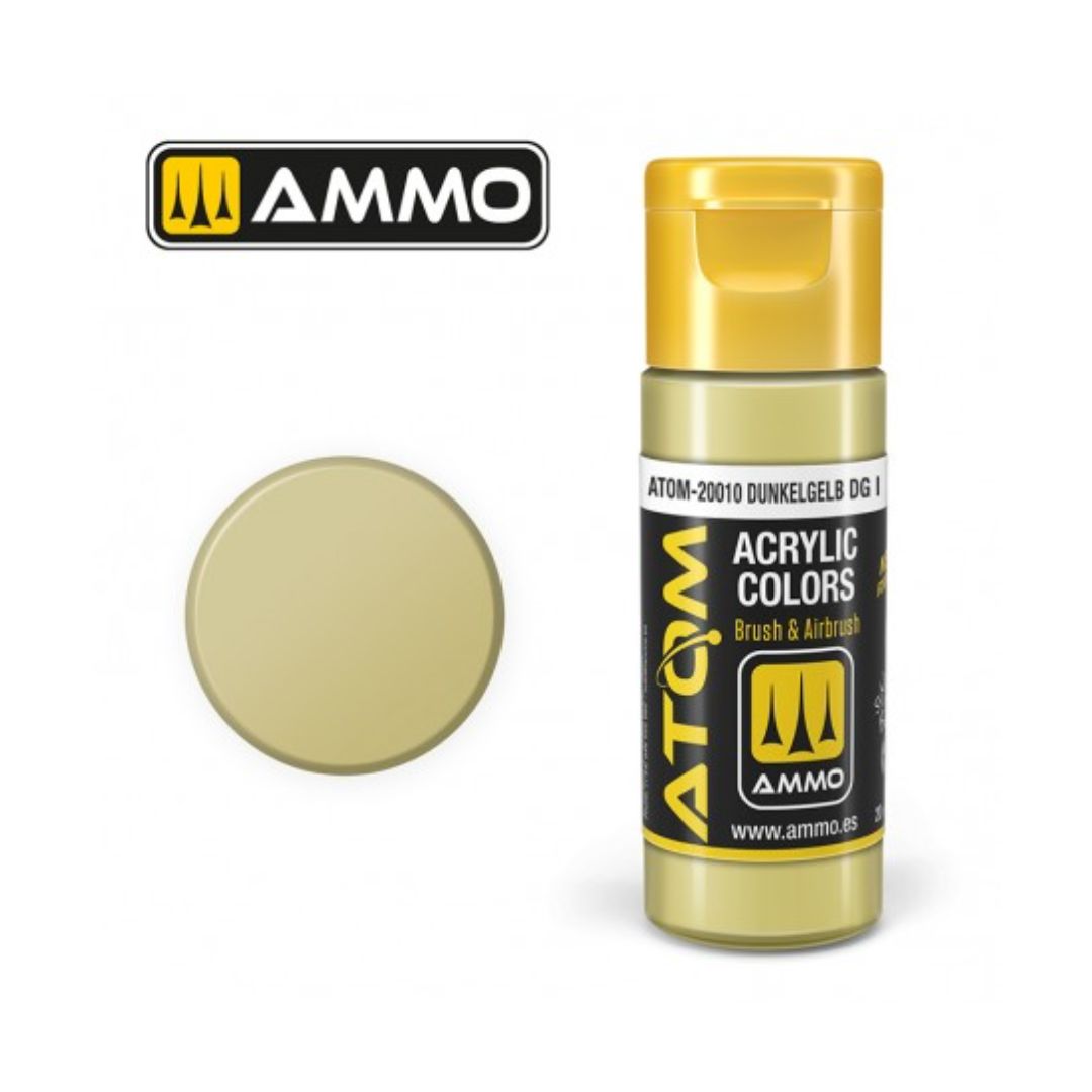 Acrylic paint from the ATOM range of Dunkelgelb DG I colour. Jar 20ml. Equivalence : FS33440 - RAL 7028 .