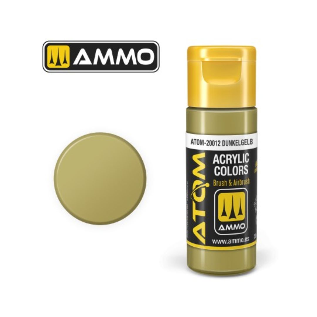 Acrylic paint from the ATOM range of Dunkelgelb colour. Jar 20ml. Equivalence : FS30266 - RAL 7028.