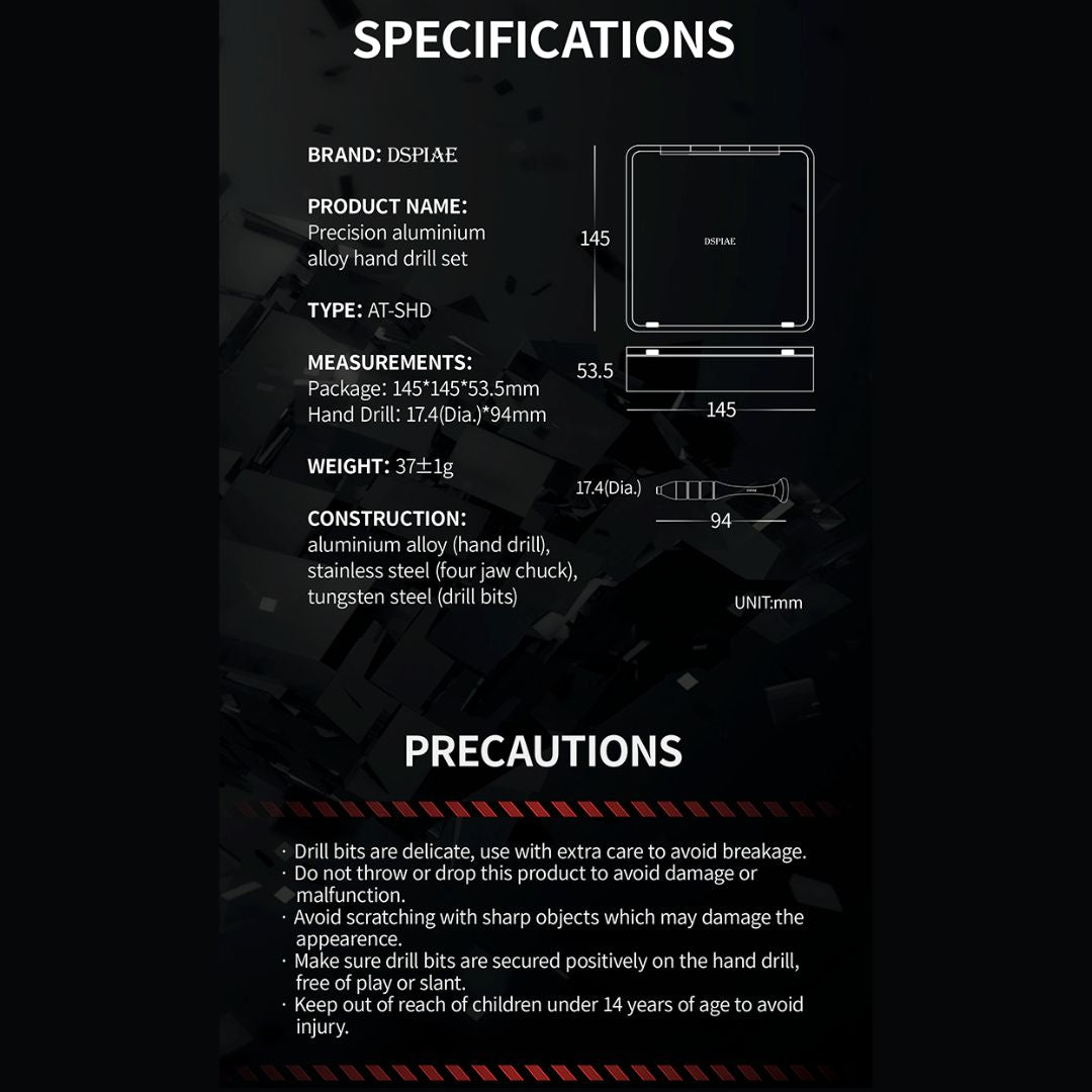 DSPIAE AT-SHD Aluminum Alloy Hand Drill Set