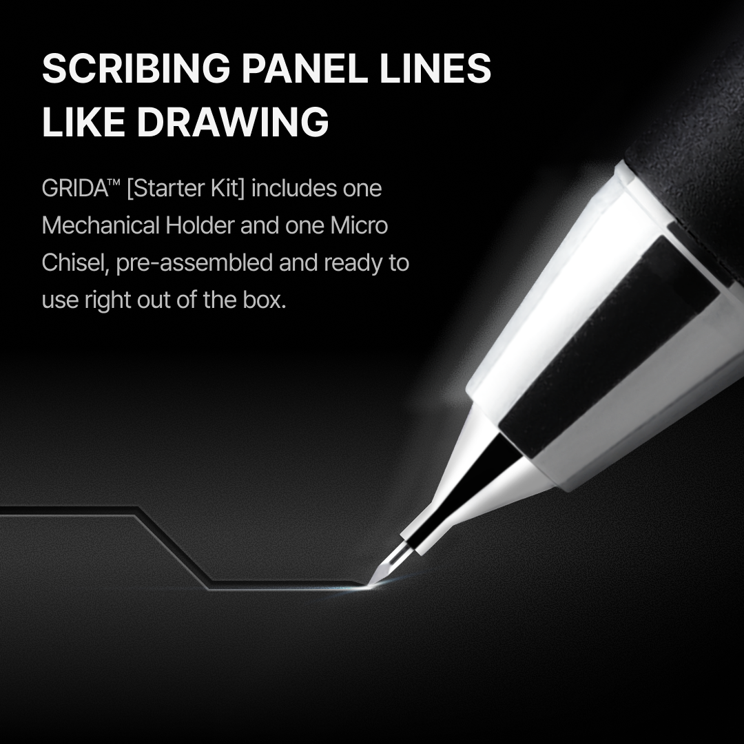 GRIDA™ Micro Chisel is precisely designed with eight sharp angles, allowing it to scribe panel lines accurately and delicately from any direction. Built for precision, every unit is carefully handcrafted by master craftsmen.