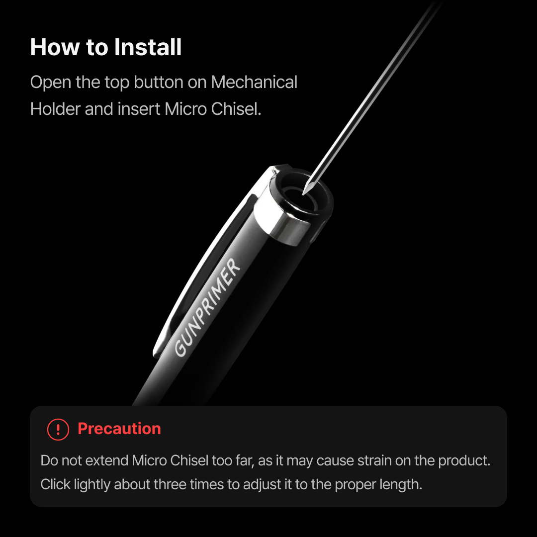 GRIDA™ [Starter Kit] includes one Mechanical Holder and one Micro Chisel, pre-assembled and ready to use right out of the box.