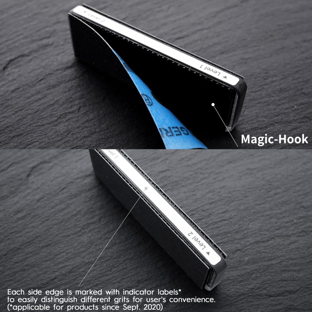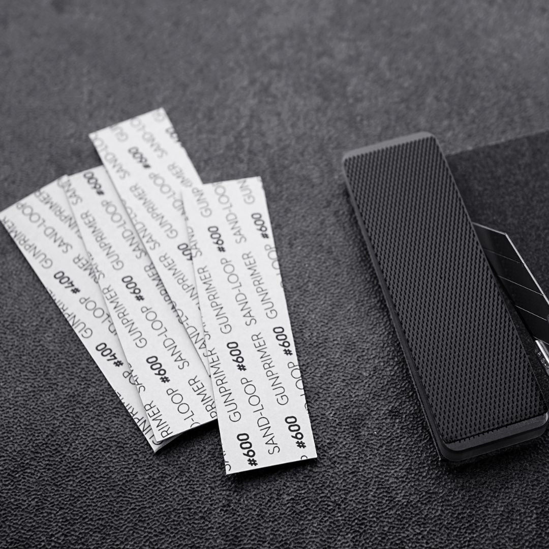 SAND-LOOP FLAT Kit is a high performance sandpaper based on the ultra-precision sandpaper used on the semiconductor manufacturing process which has superior durability and grinding capability compared to conventional sandpapers. Its adhesive backing allows to be attached and detached easily on a sanding stick or it can be used as a stand alone sandpaper. Kit set included four different grits: 220, 320, 400, 600 and one double-side holder.