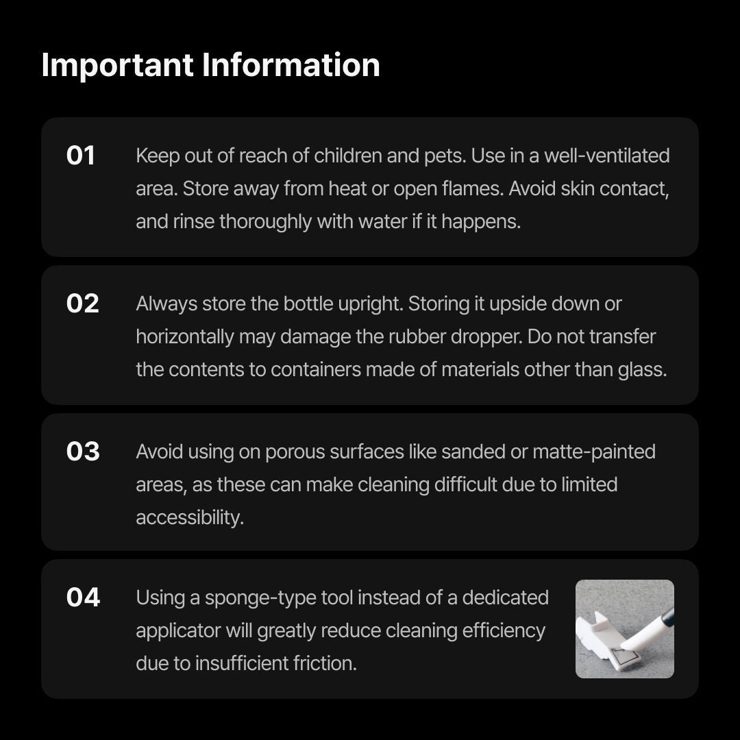 6. Bundled Products: SOLVEN [Dropper / 50ml] x 1, CLEANING SHEET [200ea + Holding Clip] x 1, MICRO SWAB [Duoble Side / 500ea] x 1