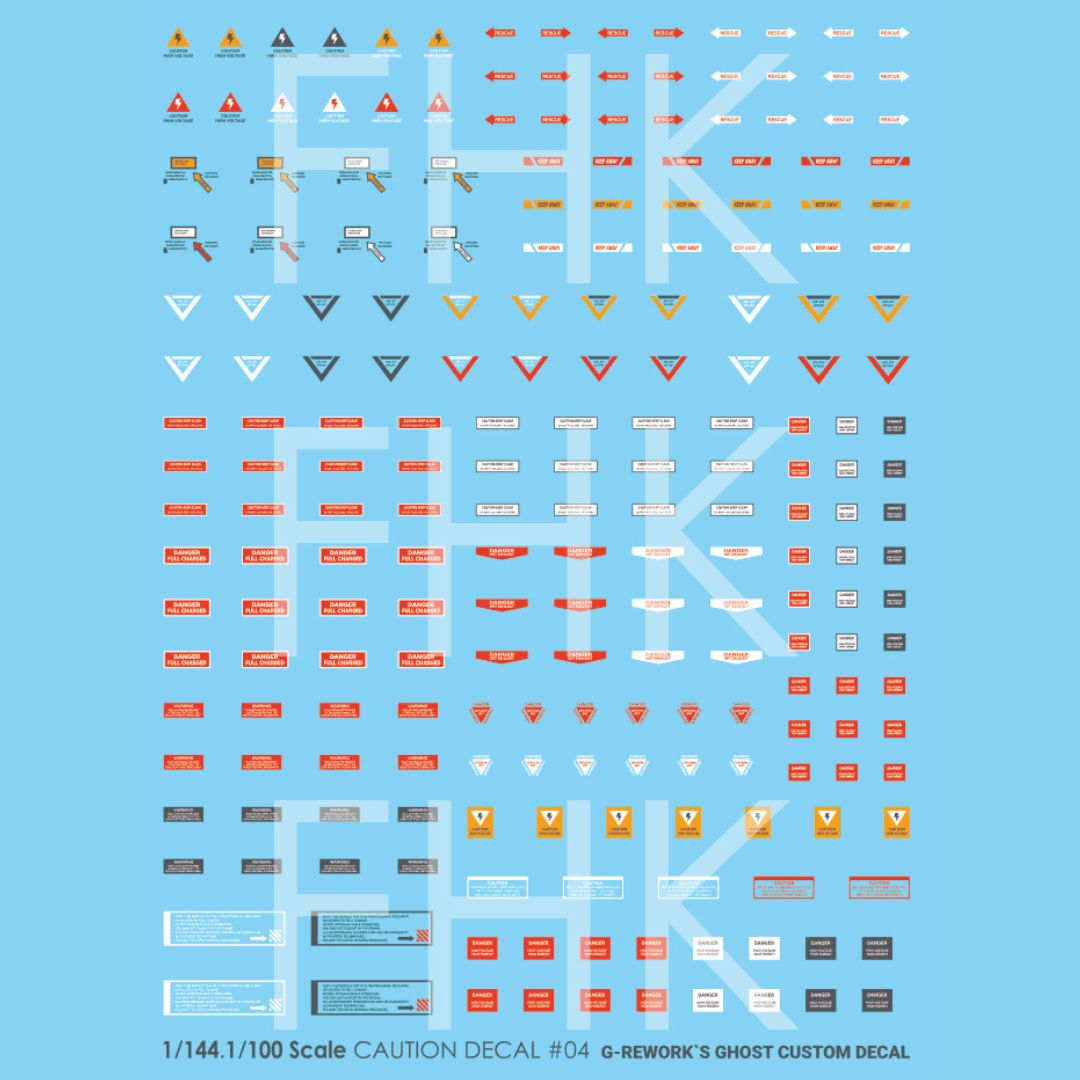 Custom waterslide decals by G-Rework, offering a variety of caution-themed graphics suitable for use on a wide range of model kits. Decal sheets & Poster card are included.