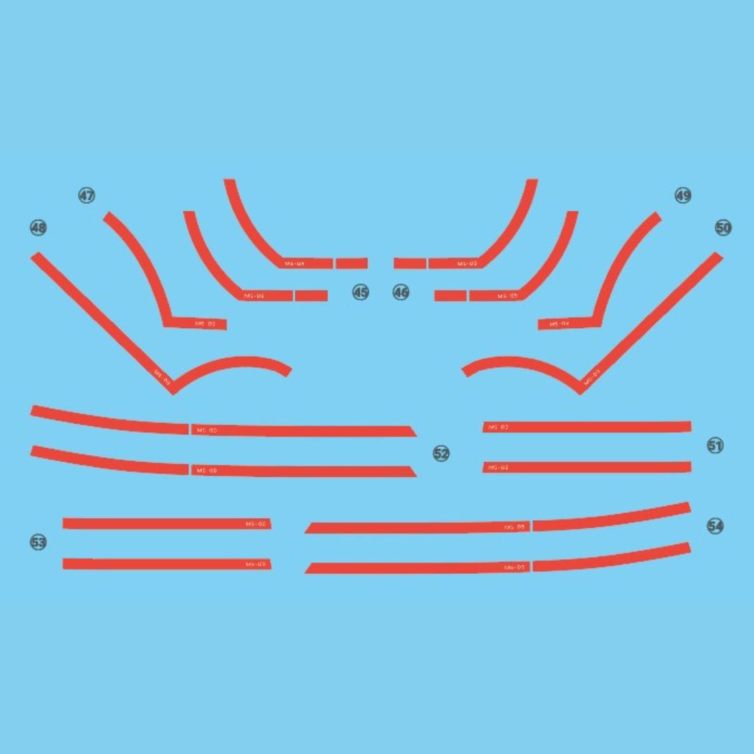 Custom waterslide decals by G-Rework. This product is designed for the specified kit of Bandai Gundam, but can also be used with other model kits to create a custom design. Decal sheets & Poster card are included.