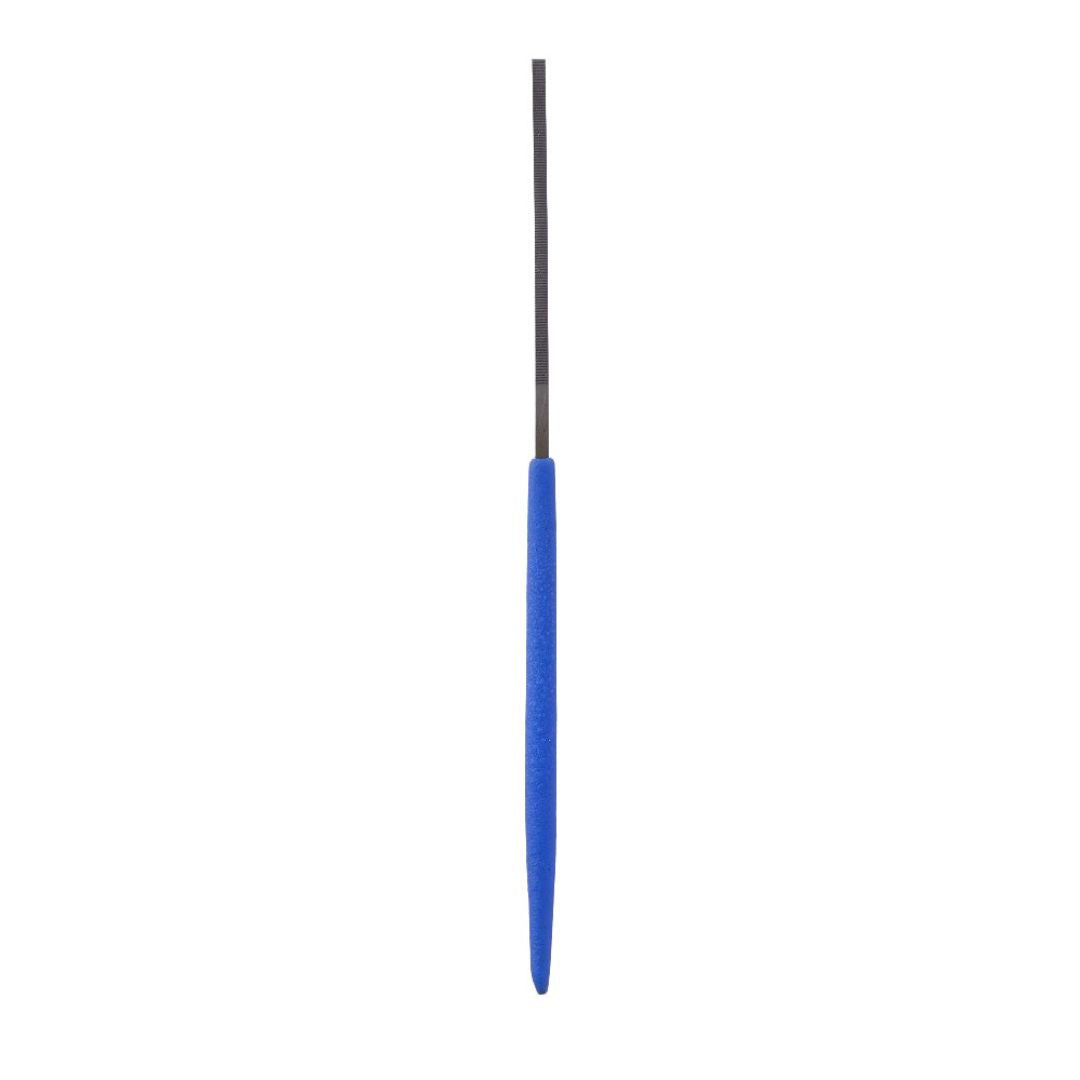 This is a special file with parallel single teeth only on the two opposing sides. It is not tapered and uses a straight piece of square wood all the way to the tip.