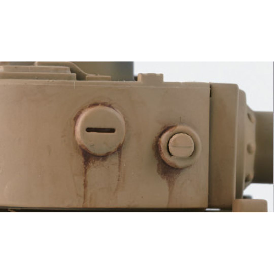 This paint features a light brown color that evokes the appearance of oil stains and rust. When used to write or apply on surfaces, it effectively reproduces the appearance of grime and residue left by flowing liquids.It is an oil-based paint with excellent flow properties.