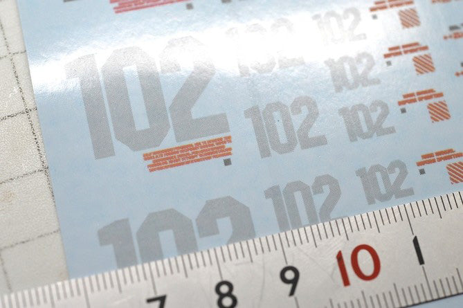 Cut out the part to be used with scissors, soak it in water for a few seconds, and when water soaks into the back, move it on top of the cloth, etc. When the mark part is peeled off from the paper and can be slid, slide it on the object with tweezers and brushes to paste it. After complete drying, please coat it several times with clear paint for the model. Using a decal fixer makes it easy to slide the decal and strengthens the mood.
