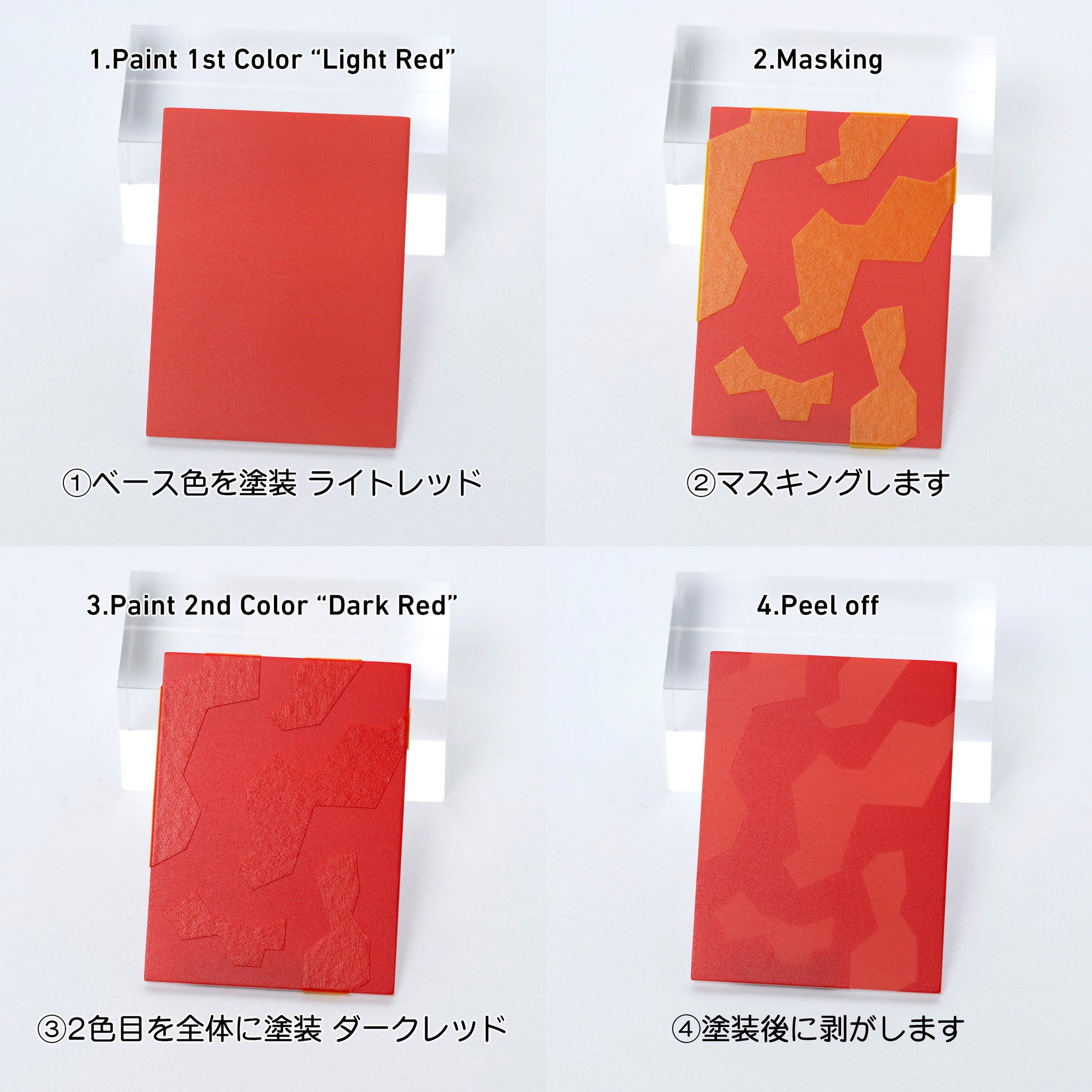 This product is a masking sheet set for easy painting of sprinter camouflage. The adhesive sheet is die-cut and consists of a variety of sprinter (sharp)-type masking stickers. There are two types of 4 sheets in total, S size and M size, and each is cut to the seal. By mixing and using S and M sizes regardless of the size of the parts, it is possible to express realistic camouflage with a more three-dimensional sense. In addition, the attached instructions also include examples of painting combinations using commercially available paints as they are.