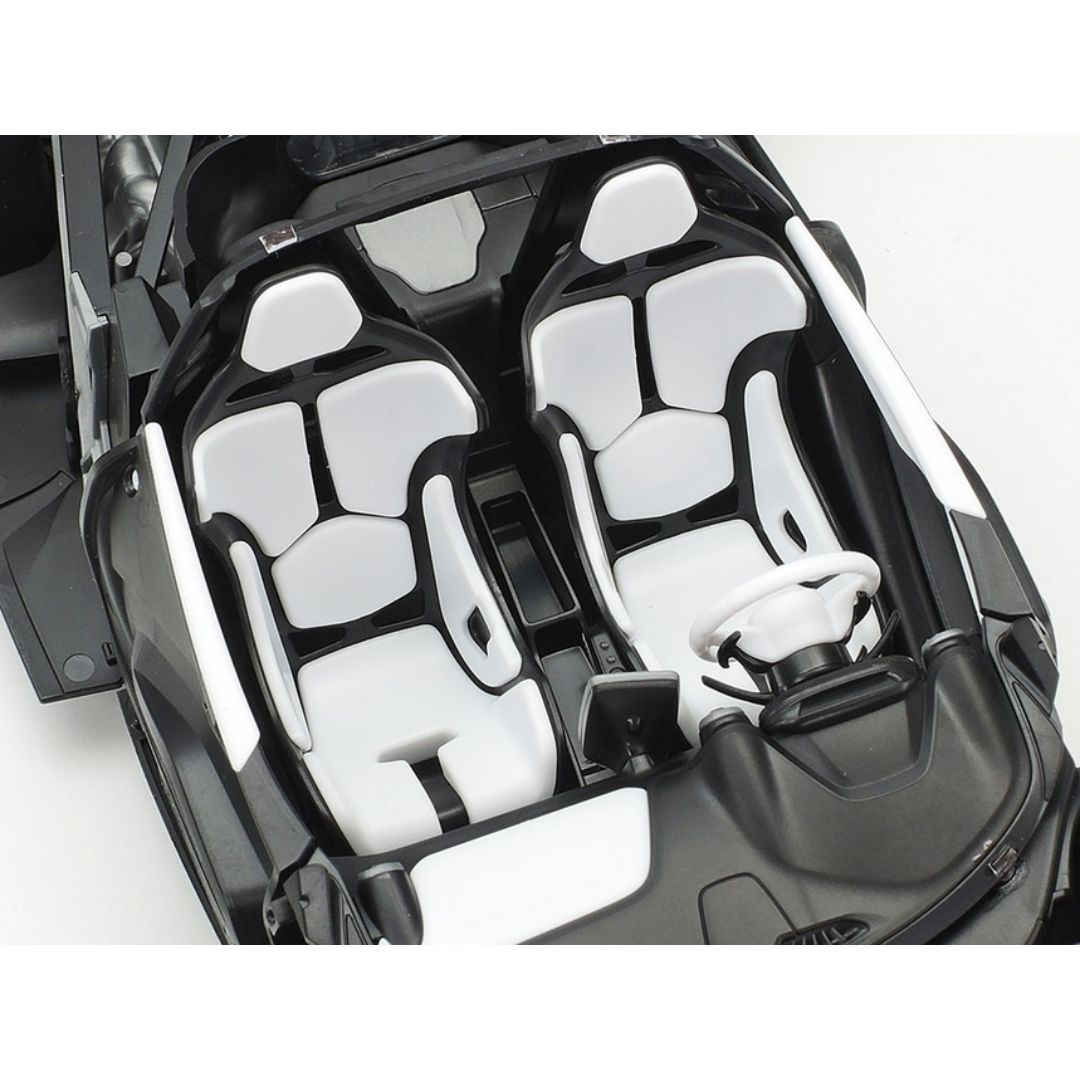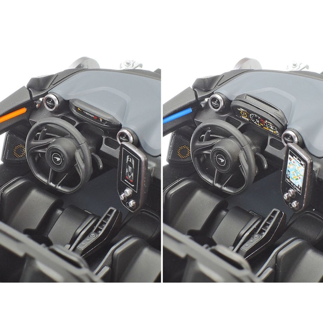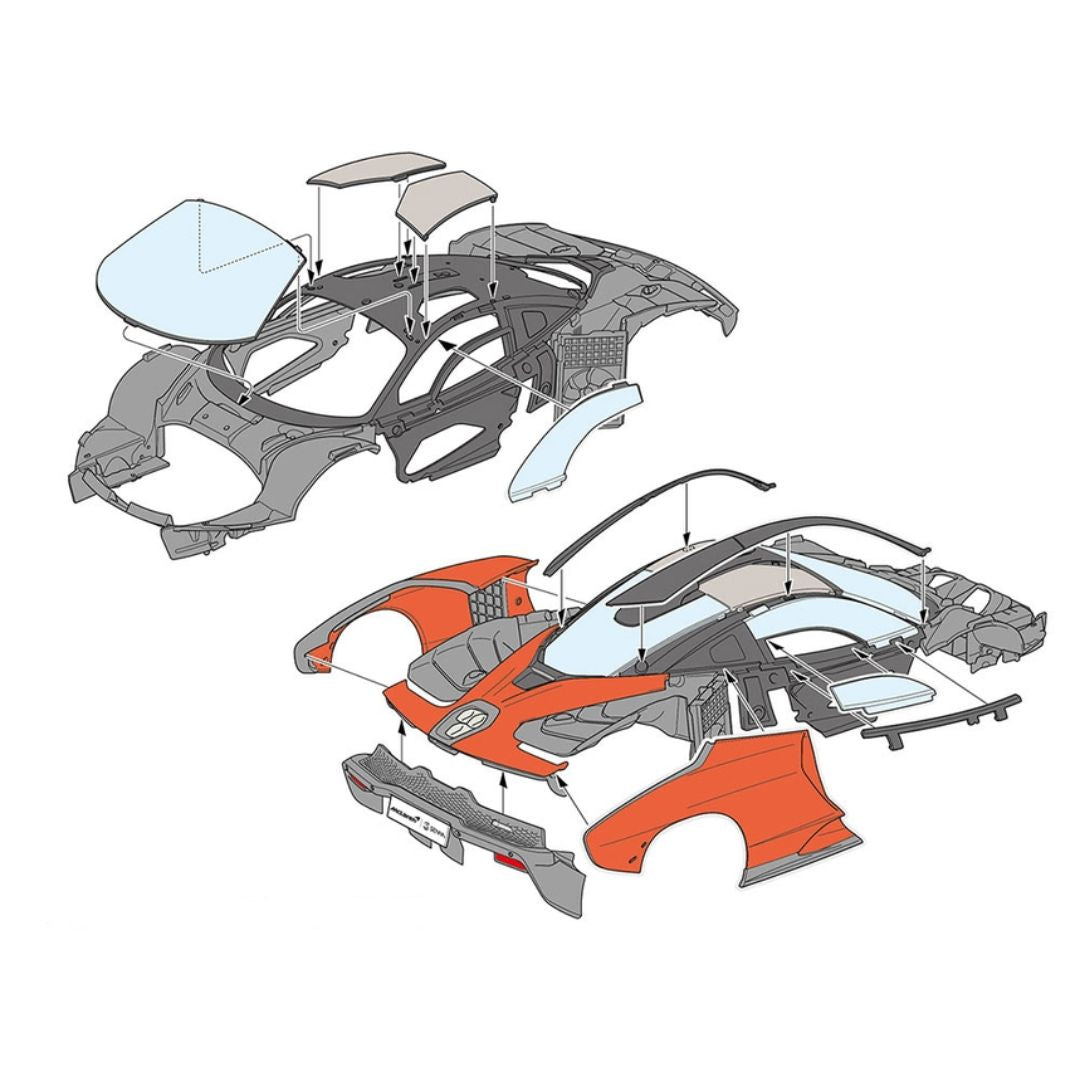 ★This is a 1/24 scale plastic model assembly kit. Length: 198mm, width: 91mm, height: 51mm. ★The complex, aerodynamically honed form of this supercar's body is accurately captured. ★Ease of painting is a core theme in the parts breakdown, with window frame sections molded onto the body, separate parts for seat pads, and more. ★Brake discs and calipers are also separate parts, allowing the discs to rotate. ★Features a realistic depiction of the V8 twin turbo engine, without the parts count escalating excessively. ★Front and side radiators are recreated in style, as is the spartan interior. Separate parts recreate door gas struts. ★Choose to depict the dashboard in one of two positions. ★Metal transfers are included to depict the McLaren logo. ★Comes with solid synthetic rubber tires. ★Front wheels are steered. ★Can be assembled in European, U.S. or Japanese spec.