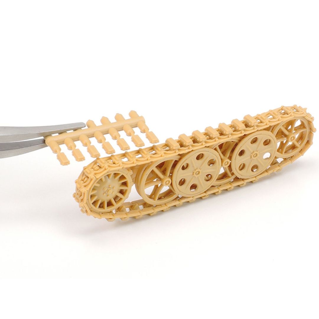 • Assembly type tracks have one-piece straight sections, and the separate pad parts, engine and transmission give a more realistic image.