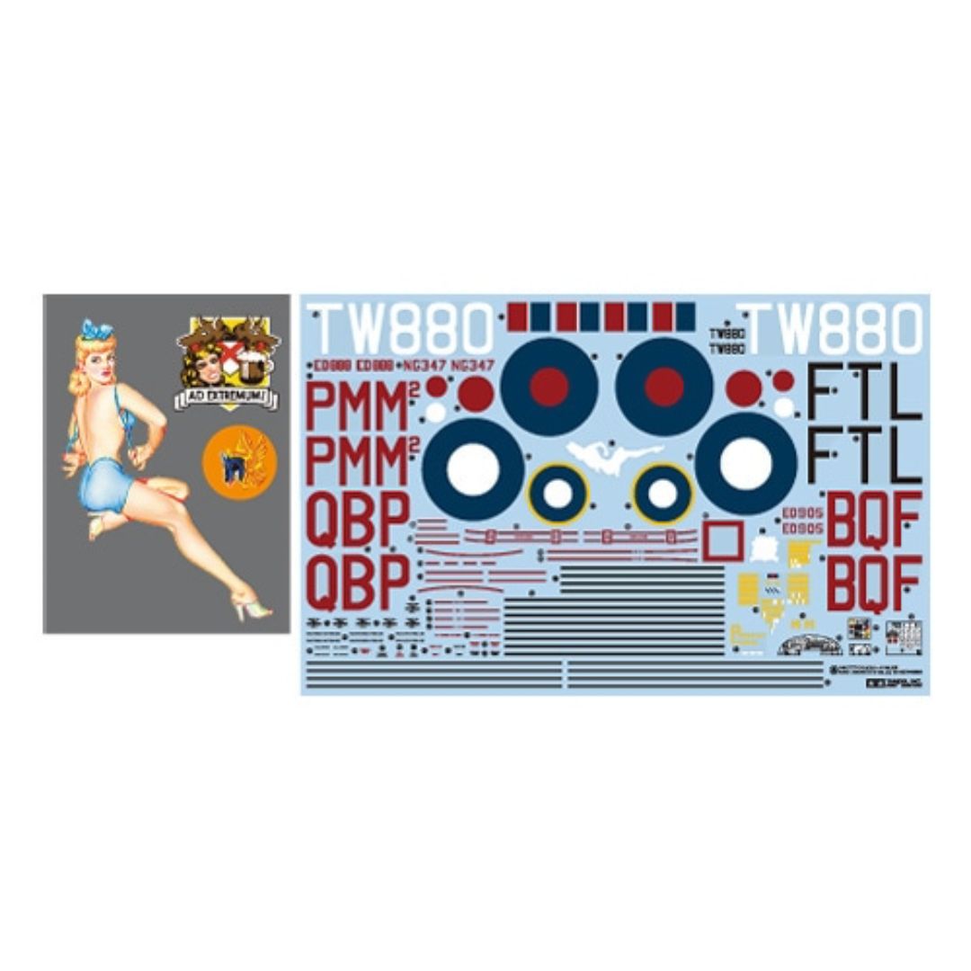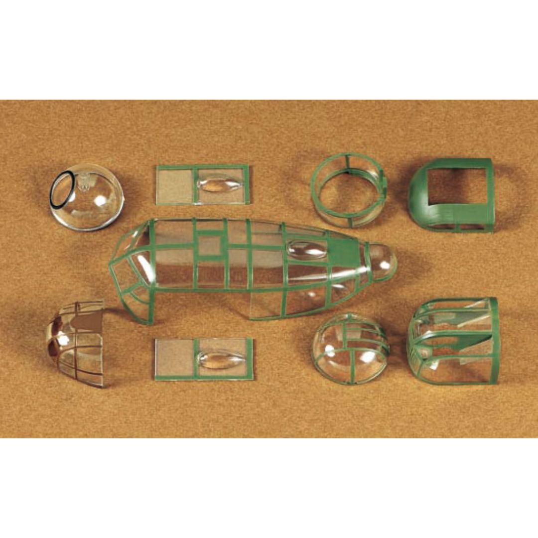 ★Length: 443mm, Wingspan: 648mm ★Includes two kinds of nose windows, rear gun turret, and exhausts to enable depiction of early- and late-production the Mk.I and Mk.III variants. ★Both pre-painted and unpainted canopy parts are included (with some exceptions). ★Interiors of cockpit, gun turrets, and bomb bay feature fine details. ★Movable nose, dorsal, and tail gun turrets. ★Parts for two Merlin engines are included and cowlings may be detached to showcase them even after assembly. ★Bomb bay doors may be assembled in open or closed positions. Parts for ordnance such as 200lb and 4,000lb. bombs included. ★Slick tires for landing gear feature realistic weighted effect. ★Pilot, radio operator, bombardier, gunner, and ground crew figures are included (5 figures total). ★Comes with four marking options.