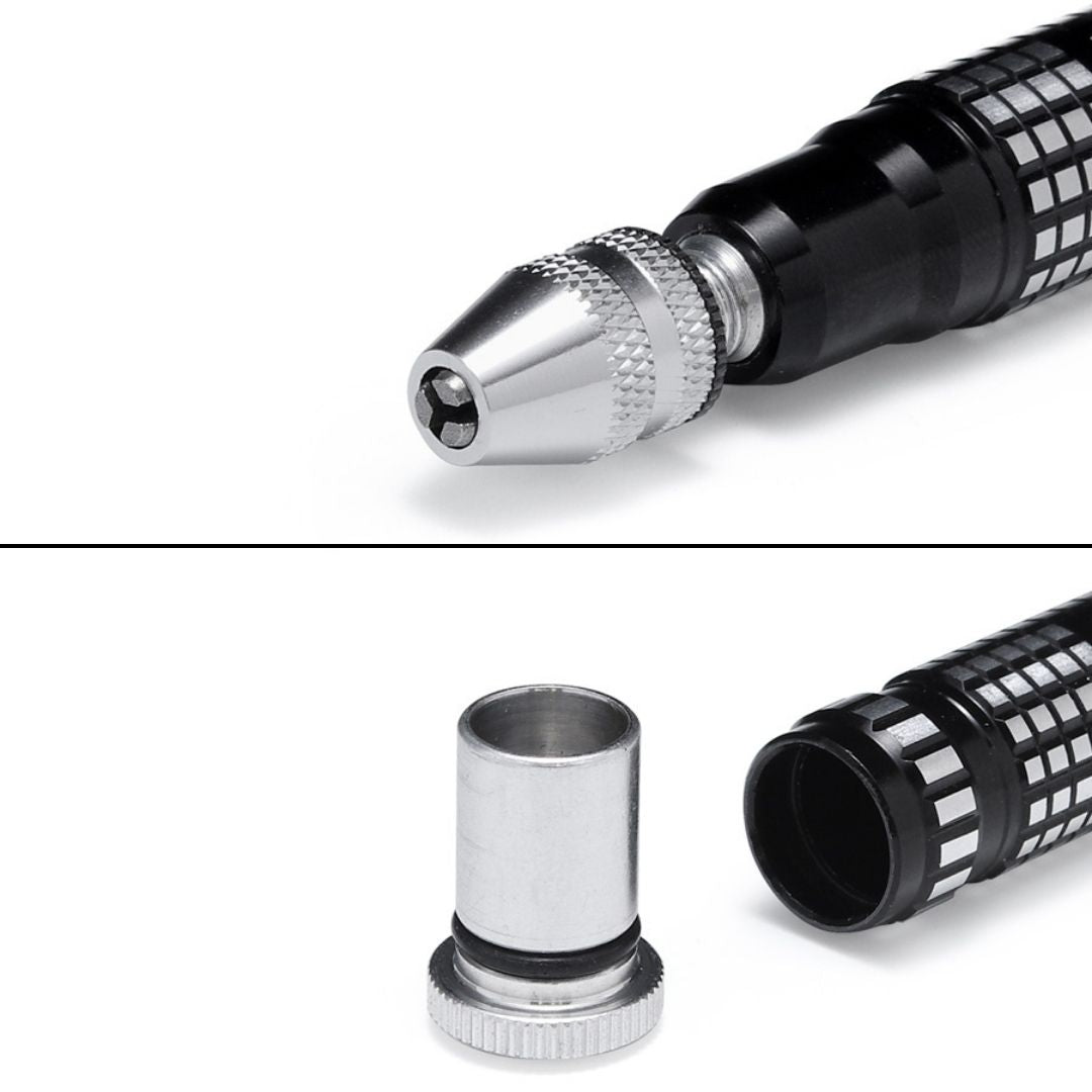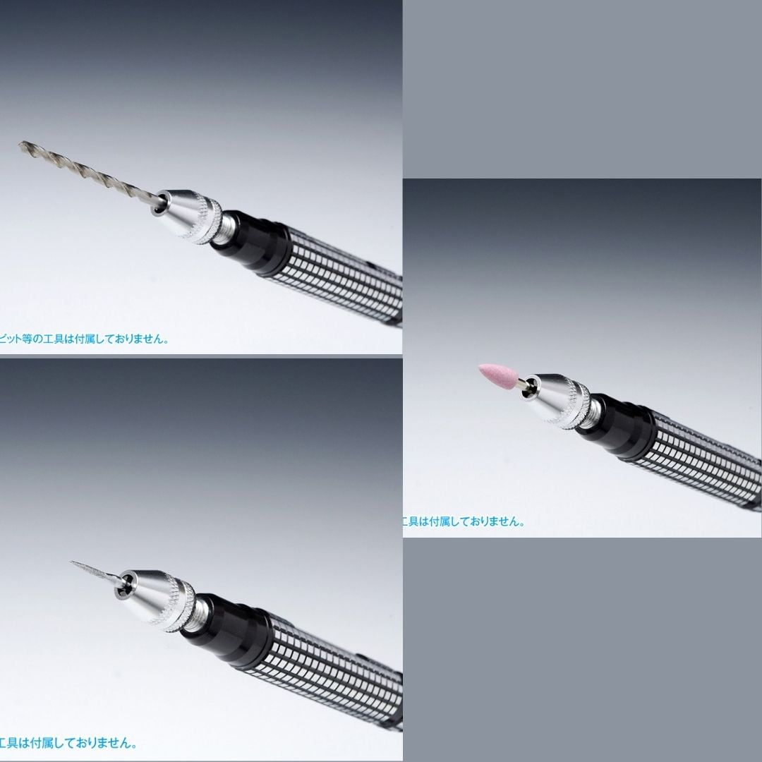 It can be used for a variety of tasks, such as attaching a drill bit for a pin vise to drill holes, or attaching a tip bit for a small router to use it like a handheld file. A scroll chuck is used in the mounting section, eliminating the need for special tools or collet replacement for removal. Compatible with round bar tools with shaft diameters of 0.3 to 3.2 mm. The main body is made of lightweight aluminum for easy handling.