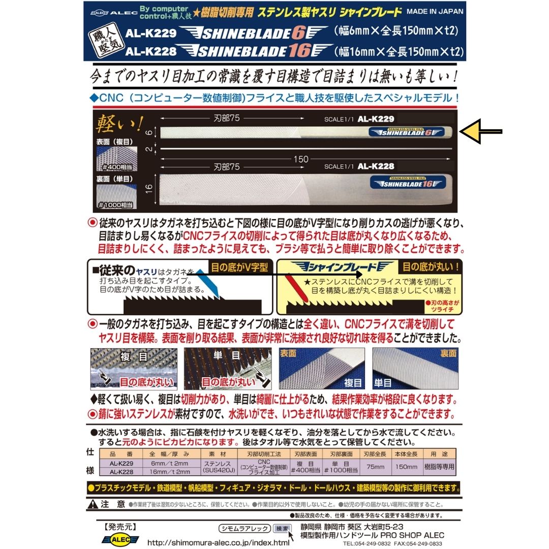 SHIMOMURA ALEC K229 Stainless Steel File Shineblade 6 #400 & 1000