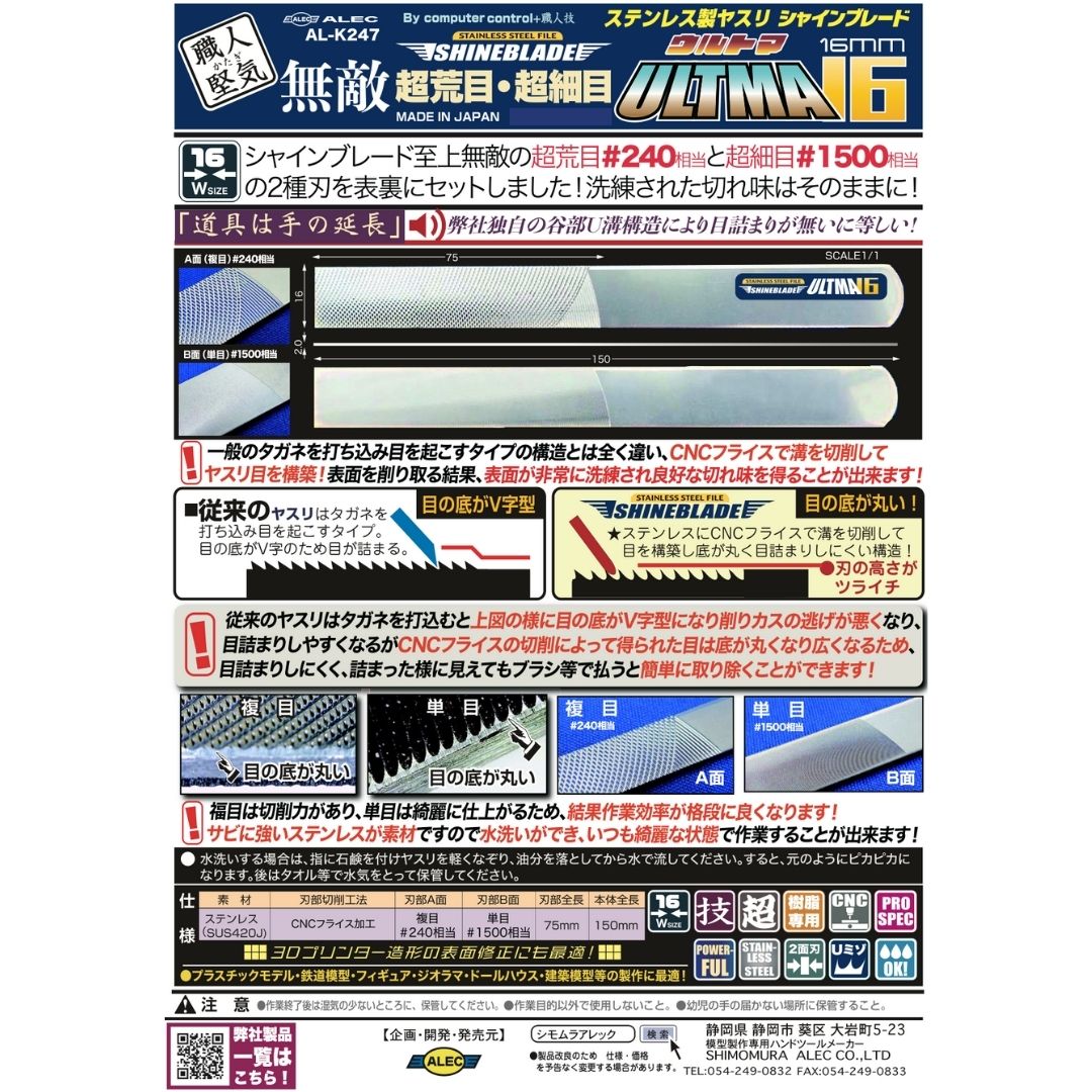 SHIMOMURA ALEC K247 Stainless Steel File Shineblade 16 #240 & 1500